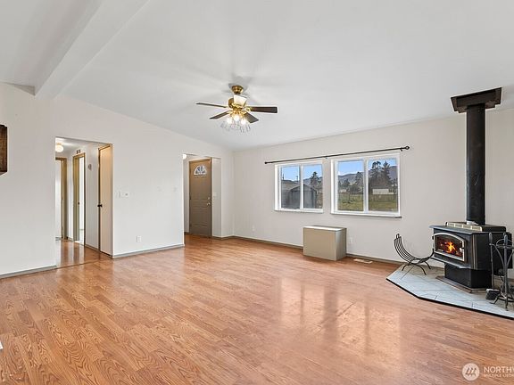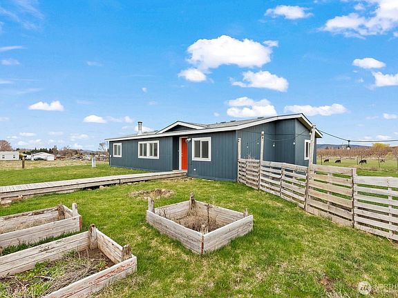 Manufactured home on 1.9 irrigated and fully fenced acres in Tieton. This 3 bed, 2 bath home offers 1,296 sq ft of single-level living with a wood-burning stove, updated paint, and a new hot water tank. Open living and kitchen area with ample natural light. The primary suite includes a soaking tub, dual sinks, and a separate shower. Exterior features include a storage shed, workshop, and space for animals or hobbies. Located near orchards and just minutes from Naches and Yakima.