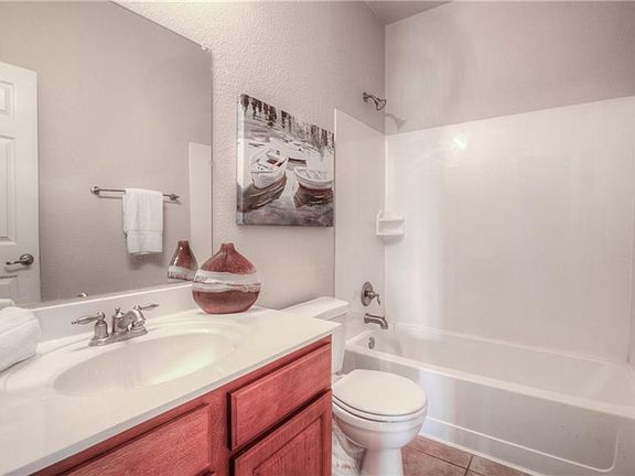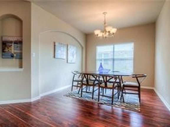 The covered front patio welcomes you into the entry hall with office/den and formal dining room. Down the hall is the entry closet, guest bathroom, 2 guest bedrooms and utility/laundry room with entry into the 2 car garage. The open kitchen and breakfast area offer a pantry closet, plentiful cabinetry, a kitchen island, tiled back splash and a shared bar/counter with the living room which is complete with a tiled, gas fireplace, entry onto the covered back patio and fenced in back yard. The main suite provides a linen closet, private toilet, double sink vanity, garden soaking tub, walk-in shower and a walk-in closet with racks and shelving. Great Neighborhood & Location ~ Ceiling Fans Throughout ~ Walking Distance To McCoy Elementary ~ Carpet/Vinyl Plank/Tile Throughout This is a non-smoking property Pets are considered No large dogs A maximum of (2) pets Approved pet security deposit rates as follows: $500.00 (1) pet $300.00 each pet thereafter