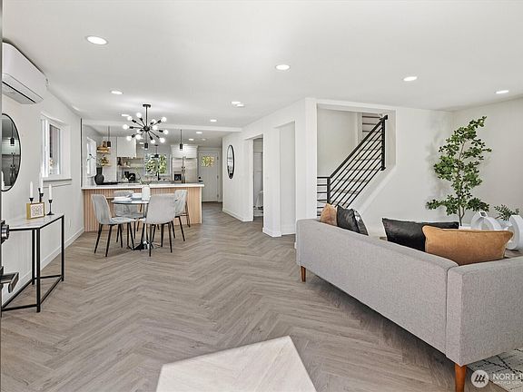 Elevate your living experience in this thoughtfully updated home designed w/comfort & style in mind. New siding, windows & freshly poured concrete path welcome you to a covered front porch w/cedar tongue-&-groove detailing. Interior gleams w/new LVP floors flowing into a well-appointed living rm w/electric FP & luminous dining area. Sizable kitchen features classic shakers, quartz counters, tile backsplash, coveted pot filler, SS appliances & stylish floating shelves. Main-level bedroom sits beside a full bath, while 2 upper bedrms each enjoy private ¾ bath w/ tiled walk-in showers. Utility room leads to new Trex deck overlooking fully fenced backyard w/fresh landscaping, large storage shed, alley access, ample parking & ADU/DADU potential.