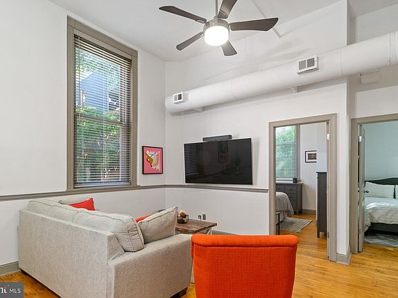 Available for a 12 month lease beginning October 1st!! This charming 2 bedroom, 1 full bath condo is in a Baltimore Landmark nested between Fells Point and Inner Harbor East. Public School N 25 was converted into these condos and this modern industrial unit is located in the back northeast corner of the building. Tons of windows, 14 ft ceilings, original to the building hardwood floors throughout, exposed spiral duct, plenty of sunshine during the morning, shade when you need it most, washer/dryer in the unit. This unit is walkable to the water taxi, Inner Harbor East, Hopkins, Fells Point bars and restaurants, and a short drive to 95 and 83. Parking is street permitted and also a city garage a block away that can be rented on a monthly residential fee. Get into this exciting neighborhood! Unit professionally mangaged. Parking requires a permit for Area 16. Anyone can qualify for one if they have a lease for the area. Parking is off street.