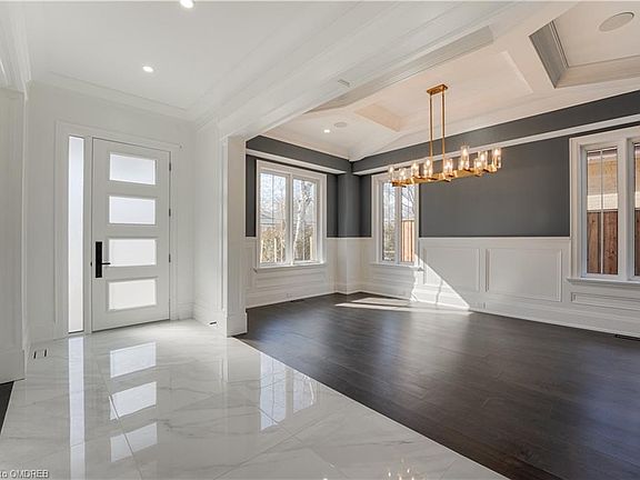 This newly custom built home in south west Oakville on a pool size lot offers elegant features and finishes throughout. From traditional wainscotting in the dining room, coffered ceiling in the main floor office and the incredible craftsmanship of the millwork on each floor, any discerning buyer will see this home as the benchmark in their search. The chefs kitchen with Jenn Air s/s appliances, 6 burner gas stove, quartz countertops and a large island with seating for up to 6 people, will inspire anyone to become the cook they've always wanted to be. The open concept into the family room offers a spacious yet intimate feeling with a vaulted ceiling, ambient lighting, wall to wall windows and a floor to ceiling porcelain surround gas f/p. As you make your way to the 2nd level, the 5 sky lights create an openness with amazing natural light that floods all floors. Open the french doors to the master bedroom and take in the floor to ceiling classically finished gas fireplace, high tray ceiling, 5 pc ensuite and finished w/I closet. The 2nd and 3rd bedrooms, share a 5 pc ensuite with double sinks and the 4th bedroom has its own 3pc bathroom with curbless shower. The lower level is finished with the same quality and standards of the main floor with a spacious floor plan. Take the fun downstairs and enjoy the gas fireplace, a movie, play pool in the games room and delight in some refreshments at the wet bar. Another 3 pc bathroom, den, storage and full bedroom with walk-in finished closet round out the space. Expand your living space outdoors and enjoy the finished covered backyard porch with ample room for dining and a cooking station that includes a built in Coyote s/s gas bbq. This home is completely finished and all you need to do is move in your many favourite things and let the journey begin. I wish I could say more, but there's too much to tell you about this home. This is one that should not be missed. Take your time...and picture yourself living here.