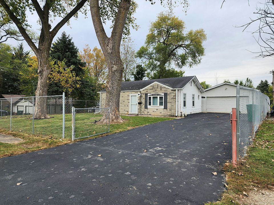 The exterior is fully enclosed with a chain-link fence, and features a private gated driveway capable of parking 3 to 4 cars, along with a spacious 2-car garage that also provides ample storage space.