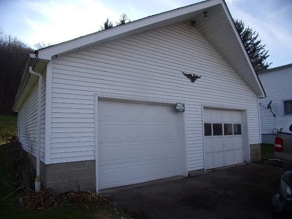 What can you find that is move-in condition with a nice garage at this price?1 & 1/2 bathrooms and space to make additional bedrooms from count on data sheet. Could easily make a 1st floor bedroom. Home has a walk-in basement with work shop area. 2 car detached garage and a nice yard to play or garden in. This home also has a nice view of the area from the front porch. Coffee time, relax on the private rear covered porch.