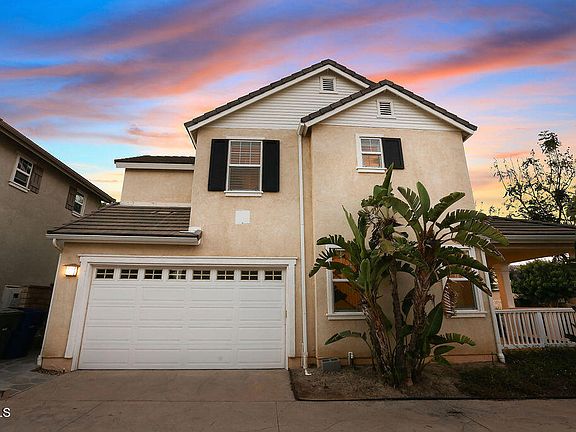This charming, updated home in the highly sought after Village at the Park neighborhood won't last long! Gorgeous professionally finished white kitchen cabinets, custom plantation shutters throughout, trendy Capiz chandelier in kitchen area, newer carpeting, quaint patio with built in firepit and grill gas lines, interior freshly painted, newer carpeting, abundant built in garage storage with surf racks, custom built-in storage in main living room. Four, well-sized bedrooms all upstairs all with ceiling fans and installed lighting. The upper level features a separate laundry and four good-sized bedrooms, including a spacious owner's suite, with soaking tub, separate shower, double sinks and a walk-in closet. Front yard maintained by HOA, private courtyard style shared driveway. Highly rated schools Immaculate, updated, four bed, two and a half bath, turnkey home in the highly sought-after Village at the Park community in Camarillo has beautiful curb appeal and is ideally located close the large community pool, fitness center, clubhouse and large park. Neighborhood amenities include splash pad, 2 parks, elementary school, gym, and sports park nearby. A rare opportunity to own this elegantly designed home resplendent with top-of-the-line appointments and quality finishes throughout. Experience resort-style living at its finest, with nearby restaurants, boutique shopping, beautiful hiking and biking trails, open space, parks and playgrounds. Enjoy the best of Southern California's luxury lifestyle!