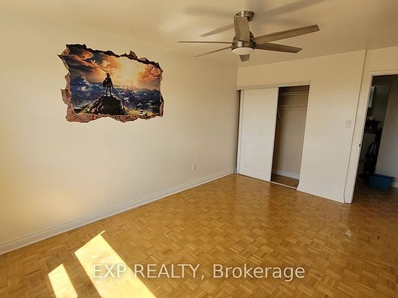 Very Spacious Condo With Open Concept Layout. 3 Large Bdrm + 2 Full Washrooms + In suite Laundry Room with storage + 2 west facing large balconies with breathtaking sunsets and unobstructed panoramic views. Freshly painted with smooth ceilings throughout. Very spacious Master Bedroom with Walk-in Closet, En Suite Washroom & Balcony. Upgraded Kitchen, 2 Washrooms, Laundry Lighting, Hardware, Flooring. New Entry Door. 1.5 GBP internet and 2 tv box with Crave included in the lease price. 24 Hrs Security & Cameras In Hallways. Large visitors parking and children's playing area in the back of the building. Steps To Ttc. Easy Access To Centennial park, Airport, Hwy 401 & 427, Close To The Malls, Shops, Schools.