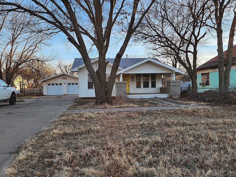 This classic Craftsman Bungalow is nestled behind huge oak trees. This home offers a living room with an arched gas fireplace. The dining room has a beamed ceiling. East windows flood the diningroom and kitchen with morning light. There are two bedrooms and one bathroom. An enormous concrete driveway leads to a double car garage that has a work space and storage. The backyard is fenced on three sides and only needs about 40 feet to enclose the backyard. There is also a huge pecan tree on the east side of the garage away from the house. Owner financing is not available. This house is occupied until November 1, 2025.