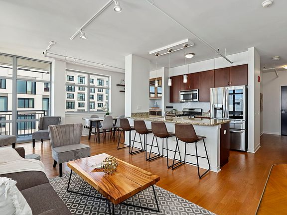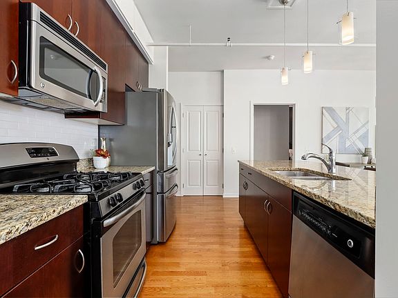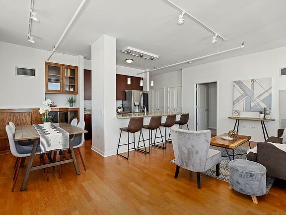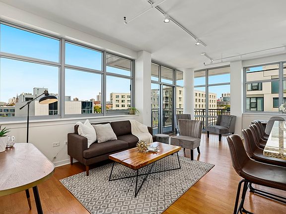 This sun drenched, 2Br/2Ba corner unit offers amazing city views including the Chicago skyline via its oversized windows and private, wraparound balcony. This home offers a split floor plan to maximize privacy, soaring 11ft ceilings make the space feel bright and airy, with beautiful hardwood floors throughout the living room, separated dining space, and updated kitchen. The kitchen is wide open to the entire living space with custom built-ins, hardwood cabinets, stainless steel appliances, and in-unit laundry adjacent in the hallway. Two generous bedrooms and bathrooms, including a primary suite with two walls of closets, and additional storage throughout the unit. Deeded garage parking available for an additional $30,000. This professionally managed, dual-elevator building boasts healthy reserves and is both investor and pet friendly. HOA includes water, heat, AC, and gas, as well as access to the recently upgraded fitness center. Blazing fast internet options are available in the building. Conveniently located steps from CTA, Target, Jewel, dry cleaner, UPS store, City Farm, as well as tons of entertainment and nightlife in both Lincoln Park and the Gold Coast.