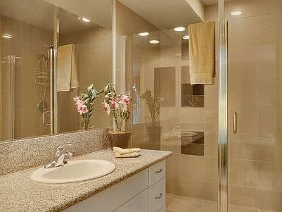 Beautiful slate gas fireplaceModern kitchenBamboo flooringElegant tiled walk-in showerPrivate deckStainless steel appliancesGranite countertops
