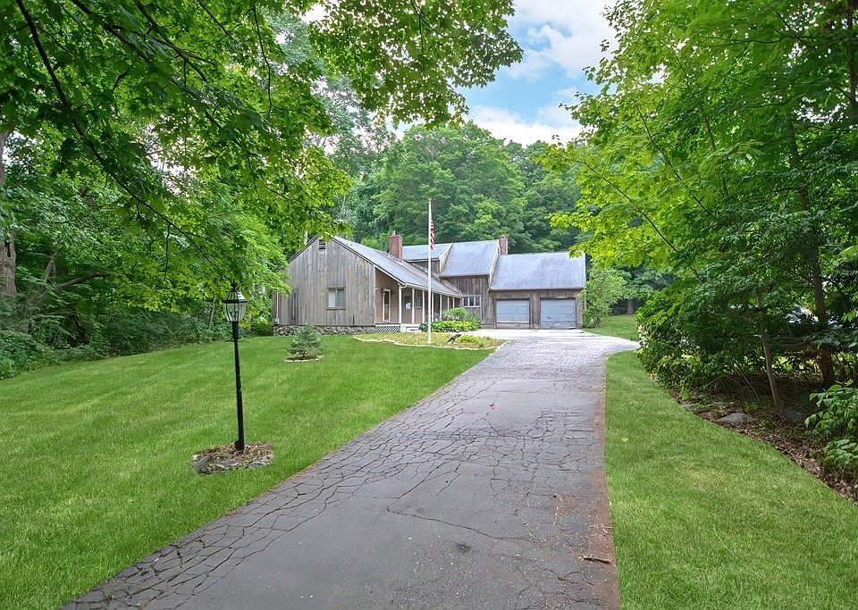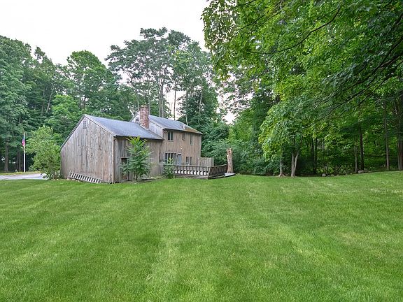 Welcome to this unique property next door to the Historical Society tucked away on 2.77 acres marked by Farmer's stone-walls & abutting Poitras conservation land & trails. A short walk to town, this 4 BR home has over 2500 sf of living space. The original home was built sometime in the 19th century featuring 9ft ceilings on the first floor, fir hardwoods in the LR w/woodstove & Den or Office, an open Kitchen & DR w/breakfast bar & full bath. The back addition includes a first floor main BR w/full bath, sauna & walk-in closet plus a wall of sliders w/views of pure nature, a laundry room & FR w/vaulted ceiling, pine flooring & FP. Upstairs there are 3 more BR's, a 3rd full bath & secret hideaway over garage, ideal for kids play. Additional features include: 2C attached garage, front farmers porch, large back deck w/hot tub & outdoor shower! A 2yr old 5-zone heating system, newer oil tank & new 4BR septic to be installed. A perfect project - move right in & begin to gain sweat equity!