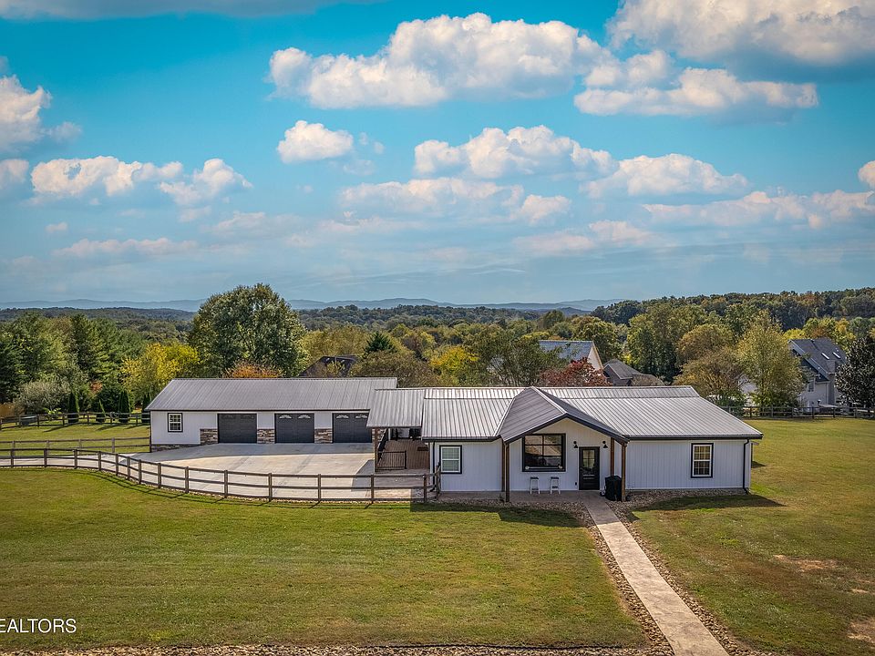 Once in a generation Modern Farmhouse estate in the heart of Farragut. Welcome to a property where unparalleled privacy meets ultimate convenience. This exceptional, nearly 5-acre estate, situated on a private dead-end road, offers lifestyle defined by luxury and tranquility. This is not just a house, it is a private sanctuary designed for discerning homeowners who want the best of indoor and outdoor living. The Modern Farmhouse is a sprawling 2200 sq ft single story residence blending modern design with classic farmhouse charm. You will enjoy effortless living with all 3 bedrooms and 3 full bathrooms conveniently located on one level. There is a massive 3 -bay oversized garage w/an attached flex area that provides ample room for vehicles, hobbies or a dedicated workshop. Step into your backyard retreat featuring a sparkling in -ground pool, dedicated outdoor dining, grilling and covered entertainment spaces. The nearly 5 acres of secluded bliss is a rare find in the heart of Farragut. The fully fenced yard is ready for your furry companions to roam safely and freely. You will enjoy the freedom and savings of well water and a septic system while keeping the option to connect to city utilities for added convenience. This setup lets you skip monthly water and sewer bills now, with the flexibility to switch to multiple services later if you choose. It is the perfect balance of independence, value and peace of mind. This property has exclusive access to the lake, perfect serene moments by the water (which is allocated through the HOA). All of this is just minutes from upscale dining and shopping attractions at Turkey Creek. Just 3 minutes from top rated Farragut schools. This is genuinely one -of-a-kind generational property that offers a rare blend of seclusion, acreage and modern luxury (with lake access). Don't miss this opportunity to own your private paradise. Buyer to verify all information.
