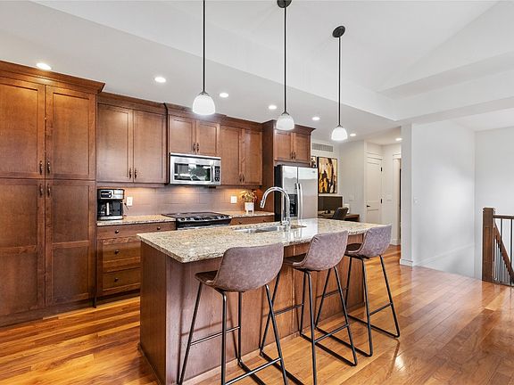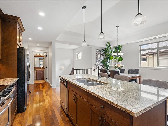 Bright and welcoming upper-level 2-bed, 2-bath townhome on the quiet side of the complex in central Glenmore. You're close to downtown, shopping, the airport, transit, and the university—everything’s nearby. Walk to Watson Rd. Elementary, Glenmore Rec Park, Kane Rd. shopping, and you're just steps to Starbucks! The layout is functional and open, with gleaming hardwood floors, granite counters in the kitchen and bathrooms, and a beautiful vaulted ceiling that adds a spacious feel. Attached single garage plus an extra parking spot outside. Easy, low-maintenance living in a great location!