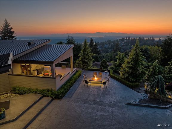 Grand in scale, this custom-built home offers mesmerizing views of the lake, Seattle and beyond. Enjoy sunsets that will take your breath away. Taking design cues from both classic and contemporary with modern undertones, the result is both beautiful and timeless. Clean lines, sloped ceilings and soaring windows surround an open floor plan to create an airy and spacious core of the home. Gourmet kitchen features appliances by Sub-Zero, Wolf & Bosch. All bedrooms are spacious and feature ensuite baths & walk-in closets. Exquisite materials, finish quality & details and a beautiful & calming color scheme throughout. Wonderful spaces – both indoors & out – for hosting large parties or intimate gatherings. An architectural gem to be treasured.