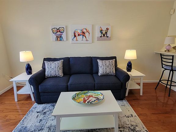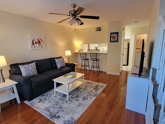Condo is fully furnished, and HOA fees, trash, and sewer are included! Utilities and internet paid by renter. One assigned parking spot at door of condo. Visitor parking is available a few feet away as well.