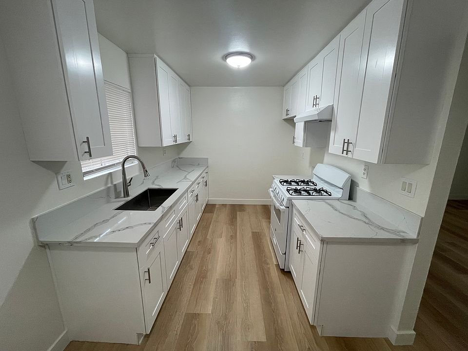 Find your way inside this beautifully remodeled 2-bedroom, 1-bathroom upstairs apartment in the City of Chino. This unit features brand-new light-colored vinyl plank flooring, a modern kitchen with new white shaker cabinets and stunning quartz countertops, and new LED light fixtures throughout. The bathroom boasts a new vanity and a gorgeous tile shower surround, while the bedrooms offer new carpet for a cozy feel. Fresh paint throughout and large windows enhance the open and airy atmosphere, making the space feel even more inviting. Head downstairs to find a shared courtyard and a private one-car garage. A shared laundry room is available on-site for added convenience. This apartment is just a short drive from major grocery stores, shops, restaurants, and the 60 Freeway. This is a one-year lease. Water and trash are included, while the tenant is responsible for electricity and gas. Unfortunately, no pets are permitted. TO APPLY YOU WILL NEED THE FOLLOWING: 1 completed and signed application for each adult 18 years and older $40.00 credit check fee for each applicant 18 years and older (We do not accept applications or credit reports from Zillow or any other company, we have to run our own) Due to increasing online fraud, we are not able to take online applications. Copy of government issued I.D., Social Security Card, or ITIN for each adult Copies of 4 most current paystubs or 3 month's most recent completed bank statements, and other verifiable proof of income providing that you make 3 times the monthly rent EVERYTHING IS ON APPROVED CREDIT AND INCOME VERIFICATION AND ALL OTHER REQUIREMENTS Proof of renters insurance is required prior to move-in if approved After approval, you have 24 hours to bring the deposit and we will hold the property up for 15 days for move-in DRE: 02230182 Water and trash are paid. Tenant pays for electric and gas. This is a one year lease. No pets are permitted.