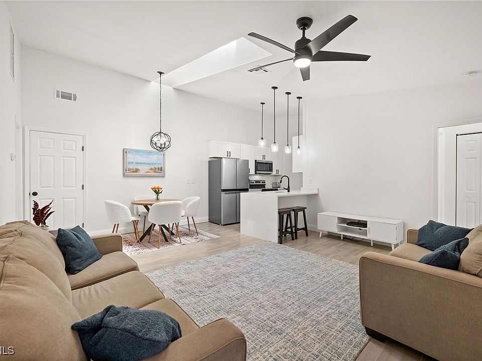 Desirable Cape Harbor area! Pet friendly complex with up to 3 pets. Seller is open to lease with an option to purchase up to 3 year ask for details. This Fully Renovated Home has a Custom Coastal Style,Gourmet Open Concept Kitchen, Granite Countertops, New Stainless Steel Appliances. Newly redone Tile flooring, doors and trim molding throughout, and designer lighting. This unit offers a split floor-plan, the primary bedroom has its own private entrance, walk-in closet & a separate coat closet, along with a updated primary bathroom. The great room is lit by beautiful natural light through the skylight and the second bedroom has a bathroom just out side the room. Around the community you will find a relaxing heated pool, racquetball, basketball, bocce, shuffleboard and clubhouse. Courtyards of Cape Coral South is just minutes away from shopping, restaurants and in close proximity to the Cape Coral bridge. Check out your piece of paradise today!