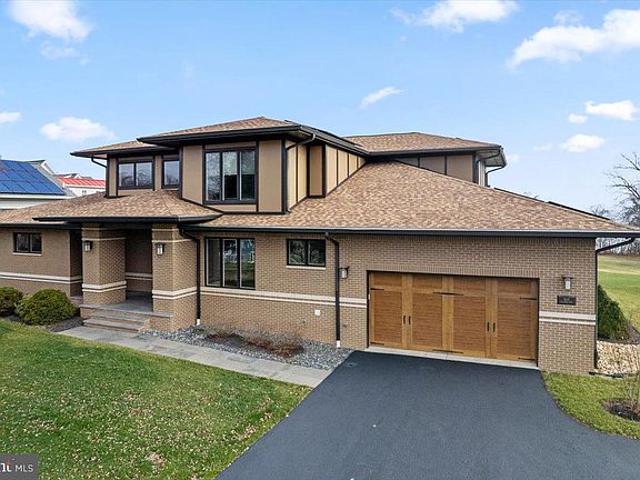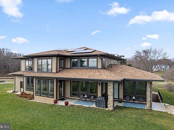 EXTRAORDINARY all brick Chesapeake coastal estate property in mid Calvert County is available now! This stunning home by Classic Design & Build evokes the Prairie style with spectacular custom cabinetry, trim, and exterior style. Located in a small but special community on an elevated lot with Bay views, this home delivers on quality, features and lifestyle…plus if you enjoy a beautiful lawn with irrigation, this will be an added bonus! Solar energy has been incorporated into the utility plan. The panels are owned/convey, and they save thousands in electric annually. Power agreement, recent bills are available for review! Enter the home to 10ft ceilings and views of the bay. Swoon over the Brazilian cherry floors, the cherry stairway and custom railings. The heart of the home is a great room with stone front fireplace, gourmet kitchen + dining room, breakfast room. On the north wing bayside is the very large primary suite with dual closets and a luxurious owner’s bathroom. On the south wing bayside is an office/guest area with adjacent full bath. A unique central services hall with built-in bar/coffee station, mud room, laundry room, oversized garage with storage and shop space is a unique and desirable part of the design. The original site plan was drawn with an in-ground pool, and so the septic system was placed with that in mind. See documents. The beautiful upper level is perfection with 9’ ceilings, a second living room overlooking the Chesapeake Bay, two gracious suites and a third large corner bedroom with adjacent full bath. The lower level was finished in 2018, and it is a beautiful space with a very custom high end bar, private gym, third living room and a 5th bedroom with connecting full bath. Three levels of luxury. We cannot possibly say enough here…VISIT TODAY!