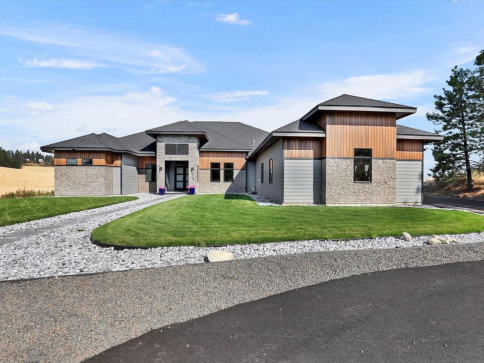 Welcome to Your Dream Home in River Bluff Ranch. Enter into this stunning 5-bed/4-bath ranch-style home, where luxury meets comfort. Spanning 4,000 sq ft, built in 2023, this residence offers a warm and inviting atmosphere. The great room concept features floor-to-ceiling windows that frame picturesque views of rolling hills, creating a serene backdrop for daily living. The commercial-grade gourmet kitchen, adorned with quartz countertops, is a chef's paradise, perfect for entertaining. The primary bedroom and bath, along with a cozy office, are thoughtfully positioned at one end of the house for ultimate privacy. On the opposite end, you'll find three additional bedrooms, 2 with their own private bath, ensuring comfort for all. 2 spacious family rooms provide ample space for relaxation & entertainment, complemented by a fireplace, 12ft ceilings, and elegant 8ft doors. Outside, the expansive back deck invites you to unwind and enjoy the beauty of over 2 acres, this home is complete serenity