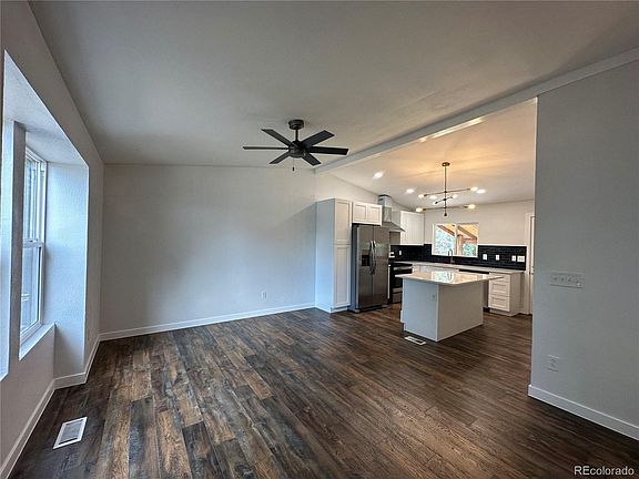 Updated Turnkey Ranch home in the Montbello Neighborhood in Denver. New everything including Roof, Windows, Cement siding, indoor and outdoor paint, flooring throughout, carpet, kitchen, appliances and baths. The first floor has high, vaulted ceilings, open area, statement kitchen island and beautifully designed tile. Both fully renovated bathrooms have a light with a bluetooth speaker for fun showers, just need a disco ball or strobe light. The master shows well and has vaulted ceilings and a large closet. The second bedroom window faces north and has a lot of great natural light. Downstairs you will walk down to a large, open living space with plumbing ready for a kitchenette or a bar. The laundry area is downstairs with room for customization. Two more bedrooms are down here (one non-conforming). The large, open back yard is ready for you to put your touches onto it. It does have RV Parking on the side of the home and driveway wide enough for 3 cars. Don't miss this beauty, there is a ton of value here!