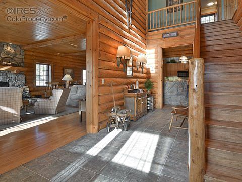 Residential and/or Commercial. "Rare, special, top of the world,unique & Wow!" are responses to this home on 35 view acres backing up to National Forest. Solidly built log frame home with 12" walls, Hickory floors, in-floor heat & covered decking. Well designed for flexible living and/or commercial opportunities including wedding venues, wine tastings, reunions and more. Your guests will never forget an event here, or the tranquility of your beautiful log home, just 5 miles from Estes.