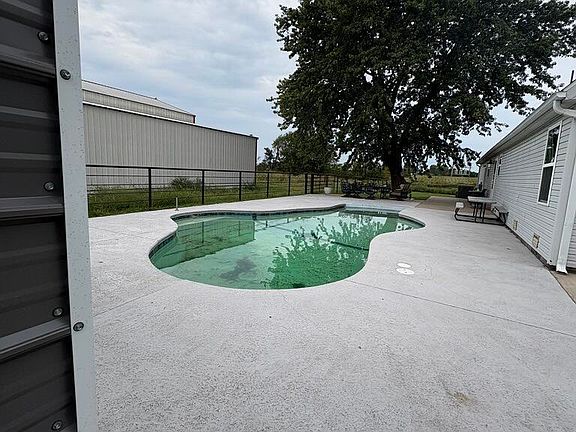 Escape through the secure private gates of this 18.73-acre property, where a commanding 60x60 barn with pipe-metal corrals, three double automatic waterers, and a pond sets the stage for effortless turnkey livestock handling. Unwind in the heated saltwater pool, or retreat to the ''pool'' shed (complete with electricity and a roll up door). Dual water security via reliable rural water & well, plus a whole-house propane generator guarantees uninterrupted comfort in this all-electric haven.