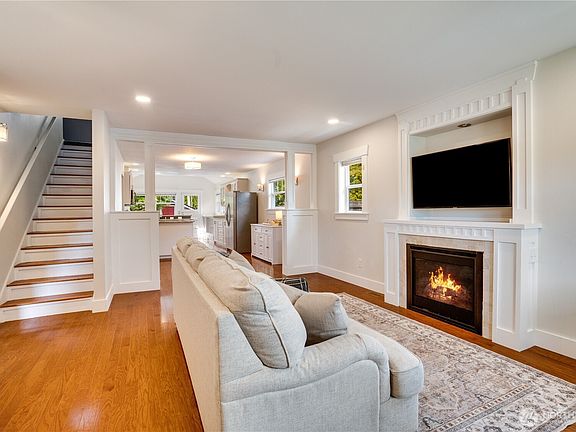 Ideal North End Craftsman, fully remodeled inside and out with exceptional attention to detail and designer finishes. The light-filled open concept features a stunning gourmet kitchen with oversized island, vaulted ceilings with skylights, spacious dining area, TV room, and formal living room with gas fireplace. All new plumbing, electrical, sheetrock, windows, and systems throughout. The upper level offers a third bedroom, and the full-height basement presents an opportunity to finish over 1,000 additional square feet. Enjoy the sunny fenced yard perfect for entertaining, a two-car garage, and additional space for boat or RV parking. Just one block to Jane Clark Park and close to schools, parks, dining, and Point Ruston amenities.