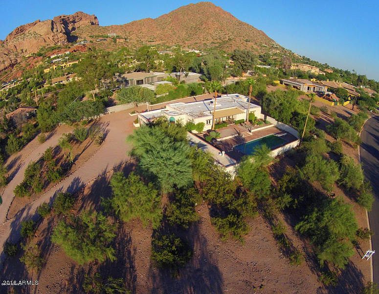 True opportunity to expand an Old Adobe Homestead on a near 2 Acre (84K) View Lot! Heavy Beamed ceilings with tongue and groove throughout. Lentils above windows and mid-century fixtures and tile in pristine condition. The Great room is enhanced with a large brick 2 way fireplace. This lot is one of the last estate lots on Camelback Mountain... build your dream estate, walled and gated with 2 levels WOW. The views of Camelback are surely world class. The added 2nd Story would give city light views too. Huge homes popping up in all directions. One of the largest lots in the area. This is truly an ESTATE lot!