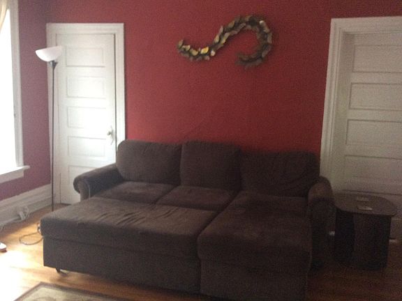 2nd floor of A large historic home.There are three fireplaces in the apartment. There is much wainscoting crown molding and other ornamentation in each room. The kitchen has granite countertops, white cabinets, Stainless steel appliances including a refrigerator s gas stove ,dishwasher as well as a microwave. There is . There are hardwood floors throughout the apartment. all 3 bedrooms are all large. washer /dryer in apt. Central air conditioning and heat with the thermostat controlled by the tenants ceiling fans in most rooms. Three gated parking spots with remote controls for each vehicle are included at no extra cost. There is a Shared patio in rear includes BBQ pit and wrought iron table and chairs . There is a large lockable storage room in the basement assigned to the second floor apartment. There are 3 gated parking spaces for each apartment, central air , large private storage room in Basement. This is a great neighborhood with a garden/ park And a separate large fenced paying field open for dogs to run LandlordPays for water sewer and trash and the tenant pays for gas and electric. By text or voice call