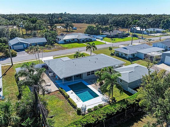 This property includes FIVE TOTAL GARAGE SPACES!! Welcome to this BEAUTIFUL, updated 4 bedroom, 3 FULL bath home offering 2358 sq ft under air, conveniently located 10 min. from Anna Maria Island. The SPACIOUS home is situated on a .37 acre lot on a dead-end street with direct access to GT BRAY PARK. This thoughtfully designed home features TWO PRIMARY SUITES AND 36 inch doors throughout, making it fully HANDICAP ACCESSIBLE. Enjoy the open concept living space with a SPACIOUS KITCHEN ISLAND that seats 8-10, perfect for entertaining. The property includes a 2-car attached garage PLUS a 35x30 DETACHED DREAM GARAGE with separate driveway. This bonus garage is ideal for storage, a workshop, hobby space or the ULTIMATE GAME/CABANA ROOM. Outdoor living shines with a sparkling LARGE pool featuring NEW PEBBLE TEC AND TILE, surrounded by a new fence for privacy. Private double-gate for RV/BOAT parking with easy access and secure storage. Recent updates include a NEW ROOF, TWO NEW A/C UNITS, NEW FLOORING, ceiling fans, and fresh paint inside and out. Additional highlights include well water for irrigation and TWO LAUNDRY HOOKUPS for added convenience. Move-in ready and meticulously maintained, this home combines comfort, functionality, and LOCATION all in one.