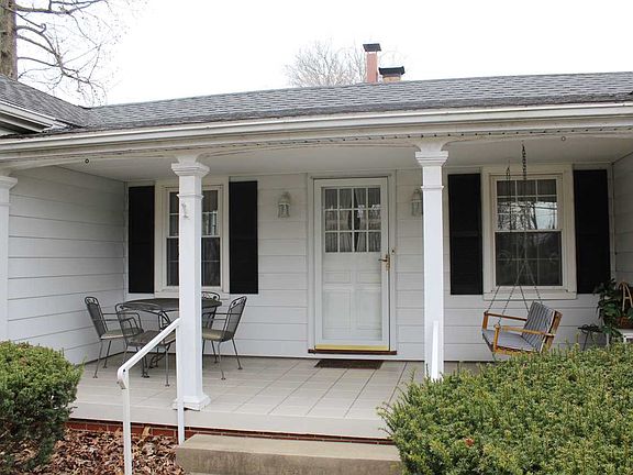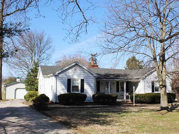 Lovingly maintained and oh so pretty ranch style home on a full acre, corner lot. A brick walkway leads you from the circular drive to the open front porch. Gorgeous hardwood flooring flows through both the inviting living room with built-in bookshelves, fireplace, and glass doors to the 6 x 20 enclosed back porch and the formal dining room with its built-in china cabinet and phone nook. Just off the dining/living room is a wonderful den/office. A spacious and well planned kitchen with lots of cabinet and counter space features a breakfast nook with a bay window overlooking the back yard. Finishing off the main level are two generous bedrooms and a full bath with double sink vanity and tub/shower combo. The partial basement is unfinished and provides additional storage space or hobby area. The owners have made the most of the full acre by adding some lovely outdoor features like the fish pond and a wooden bridge leading to the pond at the back of the property which is shared with the neighbors. In addition to a detached two car garage and an 8 x 10 utility shed there is a pole barn with a covered patio which is set up inside as a workshop. Includes: refrigerator, dishwasher, built-in range, wall oven, microwave, washer & dryer. The seller is also providing a 2-10 Home Buyers Warranty for your peace of mind.