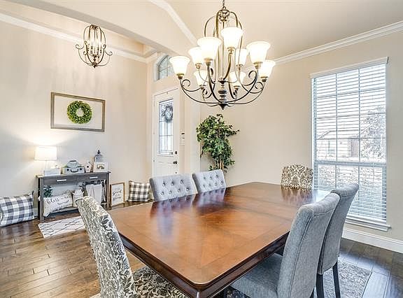 Stunning Antares home is available with NO homes behind you. This beautiful spacious home backs up to a greenbelt. Step out your back fence to the jogging & bike path or the fishing pond. Open concept, hand scraped wood floors, high ceilings, chandelier, crown moldings, granite tops, large island, butler's pantry, stained cabinets, breakfast area & formal dining, game room, media room, master with sitting area & an 18 ft. long closet. Living area is huge & boasts a stone fireplace with stained wood mantel & also leads out to the partially covered patio with a fire pit & gorgeous private views. Perfect home for entertaining. Community pool & park. Near Chisholm Trail Pkwy & all the new shops & eating places.