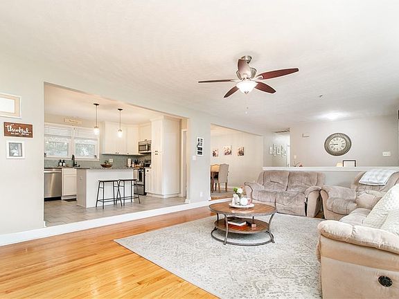 Wood fireplaceModern vanitiesOpen floor planLong back deckGranite countertopsCovered areaExtended driveway