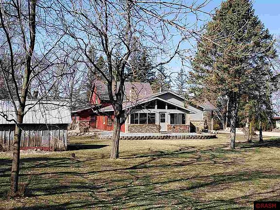 This one of a kind property is a must see! The sky is the limit with this 6+ acre property full of beautiful tree coverage and multiple outbuildings. With a 42x26 shop, connected to 2 - 2 stall garages (28x24 and 28x28) and a 2nd shop area (28x34) this property offers a lot of space. Add an updated barn(60x34) and a pole shed (30x36) and this property has the potential to be anything you want it to be. The beautiful updated home has splashes of Kasota stone through the main floor, including some of the floors and fireplace. The open concept main floor boasts a generous kitchen with breakfast bar, even a commercial range! If its peace and quiet you are looking for, sit out in the 3 season porch, or take a stroll through the beautiful property to read a book on your very own island! This property has something for everyone in the family to enjoy!