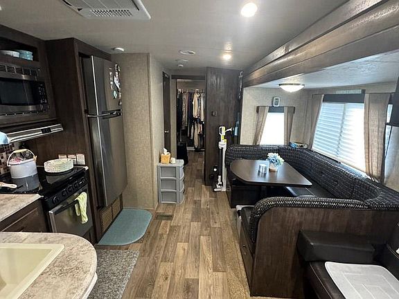 Lot with newer two bedroom camper on a lot with a large shed and septic on site. This property has a good mix of sun and shade. Camper is great condition. Includes access to pool, dock, fishing pier, crabbing pier, boat ramp, boat slips, pavilion, playground, and more.