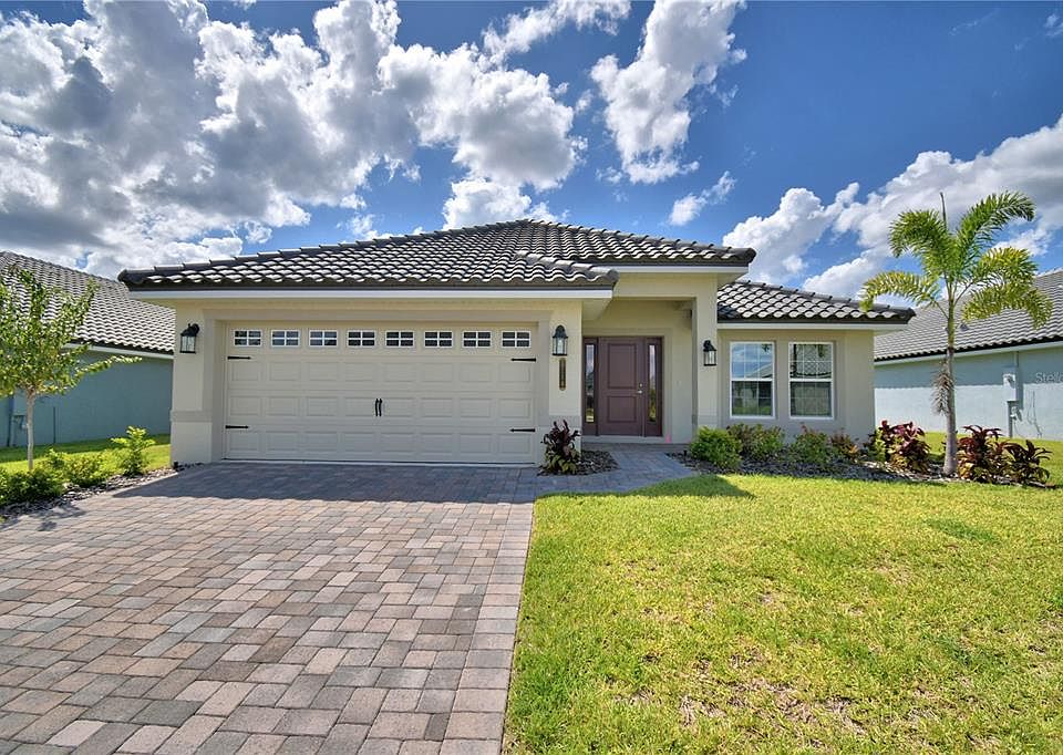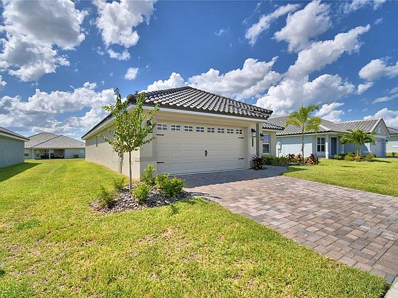 This 2200 Sq ft home has 4 bedrooms and 3 baths, 2 car garage, lots of entertaining space and luxurious details throughout! Upon entering you will enjoy the open concept great room/dining room/kitchen with 10’ ceilings, wood look plank tile in main areas, granite countertops throughout, 5 ¼ inch baseboards, wainscotting in dining room and much more. The owner suite is spacious with Tray Ceiling w/crown molding. Ensuite has double sink vanity with extra storage drawers, linen closet, tile separate shower w/glass door, nice tub, etc. The home also has a second owner suite with ensuite and a large walk-in closet. 2 other bedrooms in the home share a oversized bath with linen closet, tub-shower combo, separate toilet, double sink vanity with storage drawers. The exterior of the home has a tile roof and patio paver driveway, and patio paver covered lanai. This community is gated, has a gorgeous clubhouse with fitness center, pool overlooking the lake, basketball court, tennis court, playground, and community boat ramp. Photos are of a finished 2200 . Actual colors and finishes may vary. This is a must see home.