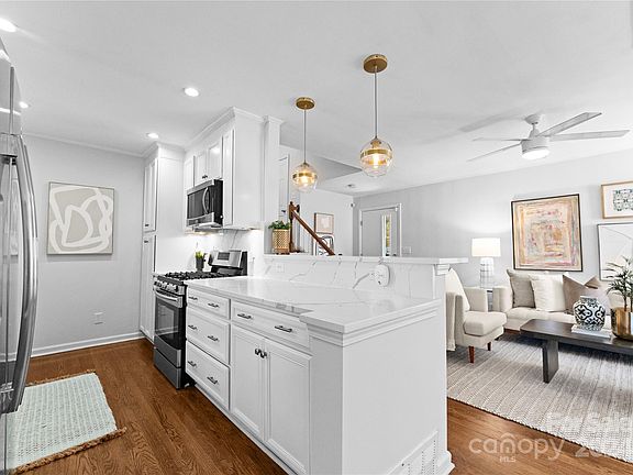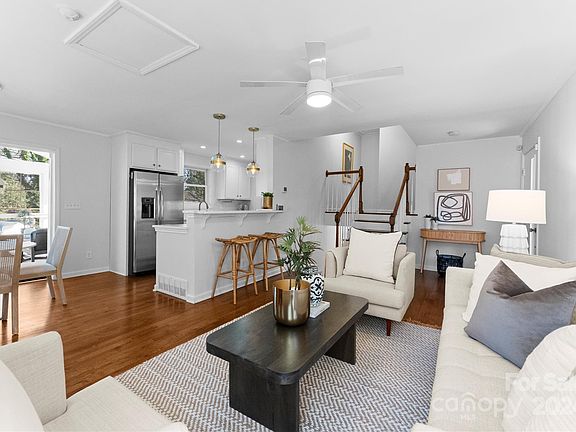 Prime location, tastefully updated, 3 bed, 2 full-bath home in sought after Madison Park. Stylish, functional living in modernized open concept home w 2024 addition of all season room. Glass folding door allows easy indoor/outdoor living: gas fireplace w quartzite surround, cathedral ceiling w fan & EZ-breeze windows, wired for TV. The kitchen boasts new quartz countertops & backsplash, stainless steel sink & dishwasher. Primary suite w expansive walk in closet, built-in shelves, desk and drawers, ante-room flex space (office/gym) bath with double vanity & walk in rain shower. Stylish hall bath updates: wall hung vanity, all new tile, lighting & hardware. These meticulous homeowners attended to structure and function: 2023: crawlspace vapor barrier & dehumidifier installed, new furnace. HVAC annual maintenance performed. Outdoor updates: new fence, front walkway, back patio, insulated shed. Roof replaced. Minutes to Park Rd Shop Ctr, LoSo, Southpark, Montford bars/restaurants