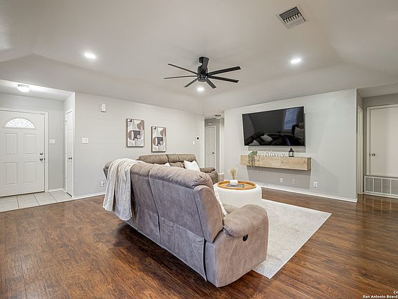 Darling Single Story Charm! Gated Neighborhood in Desirable 78247 Area! Exclusive and Pristine*Shows Like a Model*Spacious and Open*Custom Shutters*Natural Light*Double French Doors*Open Floorplan*Large Primary Suite w/ Full Bath*Oversized Shower w/ Mudset Tile Flooring, Double Vanities, Custom Touches To Include Lighting, Accents, Storage, Shelving*Large Walk-In Closet*Two Large Secondary Bedrooms*Full Bath w/ Tub/Shower Combo*Custom Kitchen w/ Custom Cabinetry, Counters, Appliances and Large Kitchen Island*Dining Area Overlooks Living Area & Kitchen*Arches, Accents, and So Much More*French Doors Lead to Inviting Private Level Lot-TREES! Shed, Privacy Fence, Extended Concrete Patio-Perfect for Outdoor Living and Entertaining*Two Car Garage w/ Water Softener System, Storage*This Home is a Must See!