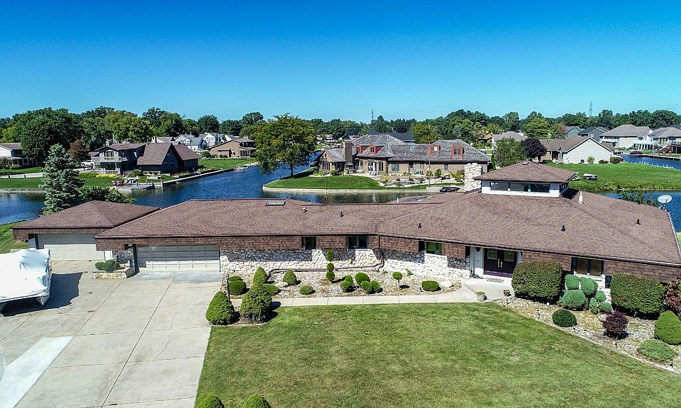 Enjoy spectacular views from this point on Simonton Lake! This home has been loved for many years from the same family ~ retro design & high end upgrades at the time it was built, and now you have the opportunity to update it & make it your own lake paradise! Sprawling ranch was built at the end of the cul-de-sac on the full point of the channel. When you walk into the entryway, you will notice the sunken living room with vaulted ceilings, high windows & then look just past that at the water views! Formal dining room for family gatherings & a large open kitchen with center island. Woodburning fireplace divides the dining room & bar room/family room so you can enjoy the cozy fires during the winter months from all areas of the living spaces. 4 bedrooms and 3.5 baths & abundant closet spaces! Sunroom has hot tub (stays) & plenty of space to entertain when you come in off the lake ~sliding doors go out onto the large open deck area where you can enjoy cookouts & sunsets. Don't forget there is a 2 car attached + 2 car detached garage & plenty of driveway space! 3 zone irrigation system. Septic is on the Simonton Lake Conservatory.