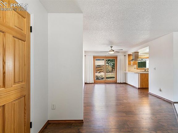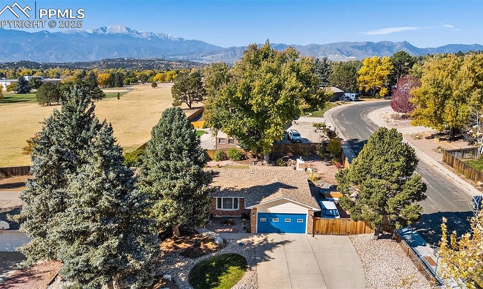 BEAUTIFULLY UPDATED RANCH-style home with stunning, unobstructed views of Pikes Peak! Situated on a spacious 1/3-acre corner lot, this home offers a fully fenced backyard, RV parking and no HOA! You will love this MOVE-IN READY 4-bedroom, 3-bathroom home with a 2-car garage that has been thoughtfully updated! The custom kitchen boasts Hickory cabinets, Quartz countertops, Stainless Steel appliances, and a cabinet wall pantry, making it both stylish and functional! The main-level primary suite offers breathtaking mountain views, a walk-in closet, and an updated ensuite bathroom with a walk-in shower! Additional upgrades include new wood doors, newer wood laminate flooring and carpet in the upper bedrooms! The cozy family room, complete with a wood-burning fireplace, is perfect for chilly Colorado nights, while the air conditioning, whole-house attic fan, and ceiling fans provide comfort during warmer days! Outside, enjoy the low-maintenance, water-wise landscaping with beautiful plants, gorgeous flowers, mature trees and a fenced backyard backing near to park—offering peace, privacy, and unbeatable mountain views! The Sunroom is perfect if you have a passion for gardening/plants or a great space for your furry family! The finished basement features a unique western-themed wet bar with a mini-fridge, a HUGE family room and a pool table (included)! The basement offers the 4th bedroom, an updated bathroom, spacious laundry room with a sink and cabinets, plus a great craft or storage room with shelves. Located in the heart of Colorado Springs, this home is within walking distance to elementary and middle schools, as an awesome park! Conveniently located just minutes from Academy Blvd. and the Powers Corridor, providing easy access to shopping, dining and entertainment! Don’t miss this rare opportunity to own a beautifully updated home with incredible mountain views and no HOA! Schedule your showing today!