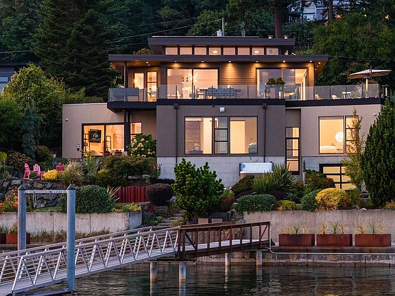 The pinnacle of waterfront living awaits you at the mouth of Wollochet Bay. Designed and built by David Hopkins with Hoppet Homes with masterful attention to detail, this home blends modern elegance and comfort in a setting of unmatched beauty. Walls of glass showcase sweeping 180° views, while a chef’s kitchen with a covered terrace creates an effortless flow for entertaining. The primary suite is a sanctuary with a fireplace, a lounge, and panoramic vistas. A junior suite, two guest rooms, and a bonus room with bar offer flexibility. With 100+ ft of pristine low-bank waterfront, private dock, hot tub, and fire pit, this iconic property invites you to indulge in unparalleled luxury, sophisticated design, and the best of Gig Harbor living.