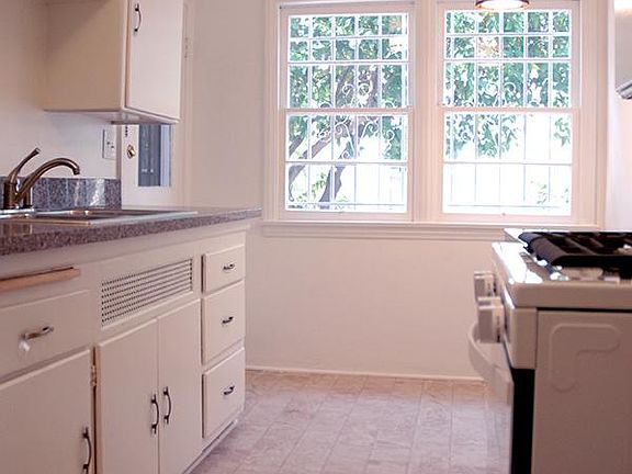 Great Central Hollywood location. This Lower Level - attractive, corner one bedroom, one bath apartment features high ceilings topped with stately crown molding and beautiful hardwood floors throughout. The nice sized living room has a large corner window, allowing both northern and eastern exposure, overlooking both the courtyard and the neighborhood. The re-modeled kitchen includes quartz stone counter tops, a full size refrigerator, a stove with continuous grate and lots of cupboard space. There is also a small but nice dining area set next to the kitchen windows and rear door. The bedroom features two built in closets and the original vanity. Bathroom has attractive yellow tiling and pedestal sink. There is also a closet in the hallway for storage. Located in historic Melrose Hills area near Melrose and Western, close to Griffith Park, Silver Lake and Hollywood. . . Laundry facilities in building. One year minimum lease. Tenant pays Electrical and Gas, and Security Deposit equal to one month's rent. AVAILABLE NOW. Parking for one car is included. Cats OK but sorry, no dogs. To schedule a viewing reply to post or call Josue at 323.665.1050