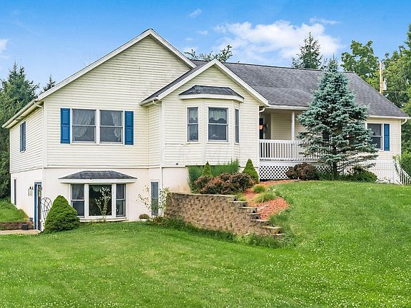 This 2,100 sq ft hillside ranch home on 1.69 acres will surprise you with 1,000 sq ft of independent living space in a finished basement. Large living room with a ventless log fireplace. Big eat in kitchen with many cabinets, island & sliding door to the deck. Master Bedroom Suite includes a sitting area & 2 closets. Full hall bath. Office could be 3rd bedroom. 1st floor laundry. Finished full walkout basement includes a living room with bay window, kitchen, full bath, 1 bedroom, laundry & office. Approx 25x30 attached garage.