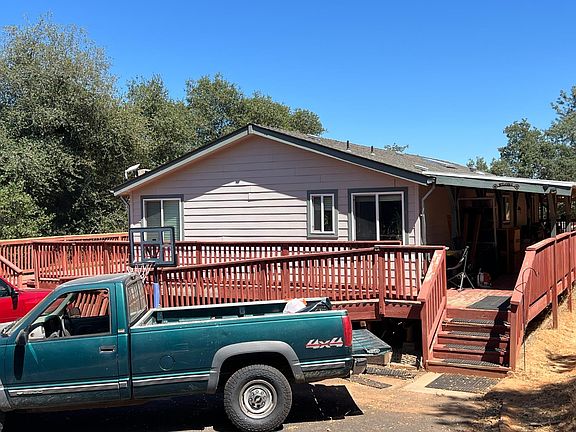 This well maintained home on 20+ acres is waiting for you! 3 Spacious bedrooms and 2 full baths, both with new toilets the home offers plenty of space. The Master large master suite is an oasis complete with a soaking tub and expanded shower. The kitchen offers plenty of counter space and an island to prepare meals. With an open concept living plan everyone can enjoy the spaces. The floorsn are new luxury vinyl plank and easy to maintain. Central heat and air conditioning keep things comfortable year round with a woodstove to keep you warm in the winter months. New baseboards and door trim are being installed. Enjoy the all season wrap around decking. There is a beautiful fenced in garden area, a chicken coop/run completely fenced and predator proof. If you are looking to have livestock there is a corral. At the bottom of the property there are two sheds and a container, all with electricity. RV Hook up space. The land is very usable with a seasonal pond and seasonal creek. If peace and quiet are what you are looking for and you have a green thumb and love chickens, look no further! CalTel is installing High Speed Internet cable!
