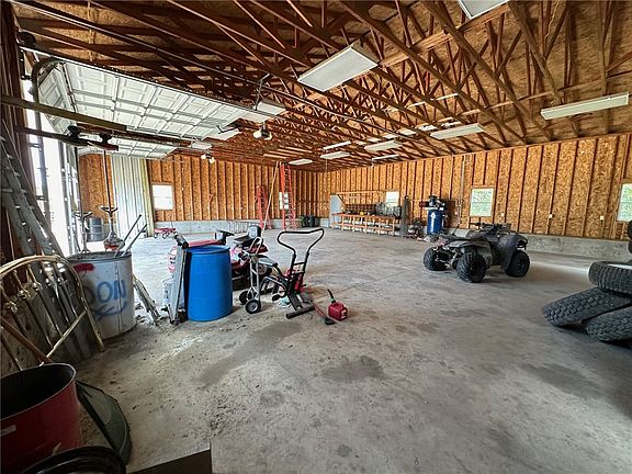 The 48 x 42 shop has two 10' doors, perfect for any storage or hobbies. Dog run will be removed prior to closing. Propane tank is owned. .