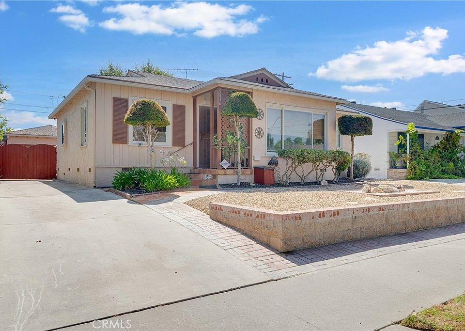 Welcome to this sizeable 1,700+ sq. ft. well maintained 3 bedroom, 1 3/4 bath single level home. Ample living space combined with 2 generous and private yard spaces make the perfect setting for indoor/outdoor living. Located on an idyllic-tree lined street in a friendly neighborhood with access to city parks, schools, shopping and freeways and proximate to an array of established and up and coming restaurant and shopping options. Settle into the spacious living room boasting large picture window or into the light filled separate dining room area while enjoying closeup views of abundant greenery. Oak floors and crown molding in living areas and bedrooms help compliment various colors. Kitchen and bathrooms refurbished sensibly. Oak cabinets and wood windows. Dining room and kitchen pantries organize chef's supplies. Follow course of unique orientation to bonus room, an expansive space with private entry from outside, brick fireplace, tiled wet bar and view of back yard. Bonus room perfect for entertaining or can be handily converted into an efficiency unit. Carefully appointed window dressings and stone-patterned front and backyards afford owner privacy as well as enjoyment of the great outdoors while keeping maintenance and water usage to a minimum. Saltillo title over periphery of back yard and side patio and into large dry-walled 2 car garage. Long driveway ideal for bonus parking. Large storage spaces inside and out. Step out front door and let driver transport you to the historic and newly renovated Long Beach Airport minutes away! Board bus at near-by stop to Del Amo Station to blue-line that transports to downtown Long Beach, Orange County and downtown Los Angeles. Enjoy suburban space with connectivity to the best that Southern California living offers!
