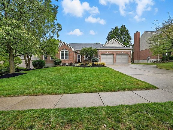 Beautiful move-in-ready Ranch in Mason Schools, offering lots of upgrades! 3685 total square ft. 9ft ceilings, 4 bedrooms, 3 full baths. A huge great room opens to a gourmet kitchen & dining area. Stainless steel appliances, including a double oven, microwave, gas cooktop, dishwasher, and refrigerator. Granite countertops on 42-inch white cabinets, kitchen island, custom tile backsplash, under-the-cabinet lighting, oversized walk-in pantry. The large owner's suite features a tile shower with a seat, a frameless shower door & separate soaking tub. Stunning hardwood floors throughout the main floor, except for laundry & baths. Finished Rec Room with 9 ft basement ceilings!! Tons of recessed lighting, flex room, Full bath, theater wiring with speakers & plenty of storage. The landscaped yard features mature trees, evergreen hedging, raised garden beds, stone pathways, an oversized patio, and multiple outdoor gathering spaces. One owner. Non-smoker, No pets. Home is meticulously maintained