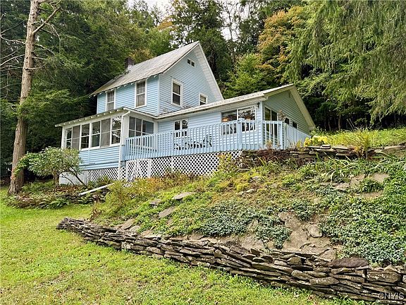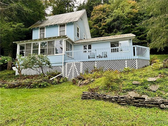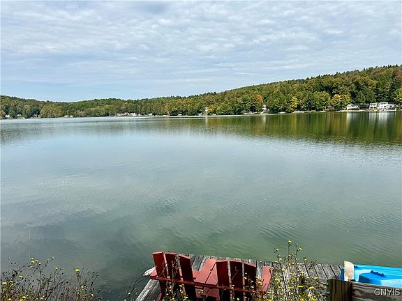 LAKE FRONT!!!!!! Nestled on the pristine waters of Bradley Brook in Eaton, NY, just a 45 minute drive from Syracuse, this expansive camp offers almost 1200 sq. ft. of living space and 150 feet of property lake frontage. Perched overlooking the lake, the property features a spacious enclosed porch and a large deck ideal for soaking in the breathtaking lake views. Inside, the family room features a cozy wood burning fire place, while the huge kitchen-flooded with natural light from numerous windows-boasts a newer refrigerator and stove. The first-floor primary bedroom includes a large closet and is located right next to the full bathroom with a shower and a tub. Upstairs are 3 additional bedrooms-two of which offer stunning lake views, while the third overlooks the woods. The camp includes a dock and a few small boats. The double lot ensures unmatched privacy, with tiered levels for Adirondack chairs, a fire pit and flat areas for lake games. The camp has electric baseboard heating on the first floor and is connected to well water. Fully furnished and full of potential, this property is ready for you to make it your Perfect Lakeside Retreat.