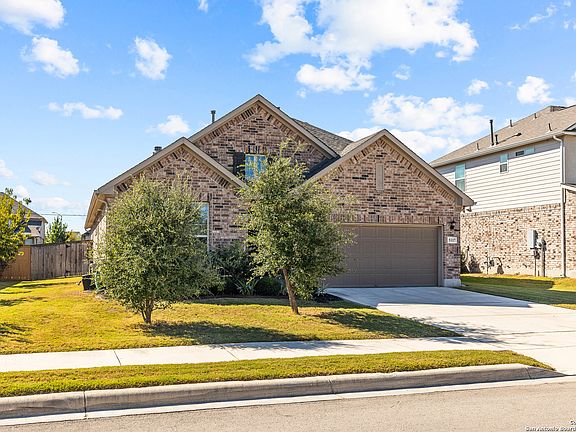 Prepare to be impressed by this elegant and exceptionally functional 1.5 Story residence, perfectly situated in a highly sought-after community and proudly zoned for the highly-regarded Comal ISD, including the acclaimed Davenport High School and Danville Middle School. Key Property Features are 4 sides masonry, 3 BR/3.5 Bath with large bonus room upstairs with a full bath and closet. Study/Office/Flexroom area downstairs. The heart of this home is a culinary dream. The gourmet, gas-cooking kitchen boasts sleek granite countertops, stainless steel appliances including a 5-burner gas cooktop and a built-in oven, and a huge amount of prep space on the oversized center island. It flows seamlessly into the light-filled extended living room, creating a fantastic open space for entertaining and daily life. A dedicated, formal separate dining room offers the perfect setting for holiday meals or intimate dinner parties. Thoughtfully Designed Floor Plan The 1.5-story layout provides the ultimate flexibility. All main bedrooms and the principal living areas are conveniently located on the first floor. A private study/flex room near the entry offers a quiet space for a home office, library, or hobby room. Ascend the staircase to discover the private retreat of the upstairs flex room. Complete with its own full bathroom and closet, this space is perfect as a private media room, a fourth guest suite, a gym, or an expansive playroom-the possibilities are endless! Enjoy the Texas outdoors on your extended covered patio ideal for evening relaxation or weekend grilling. The home is built with durable, low-maintenance four-sides brick construction, ensuring lasting quality and exceptional curb appeal. Location is everything! Benefit from the excellent educational opportunities provided by the highly-rated Comal Independent School District, zoned specifically for Davenport High School and Danville Middle School. Quick access to I35 and Randolph AFB. This property perfectly balances luxury, space, and a premium location.