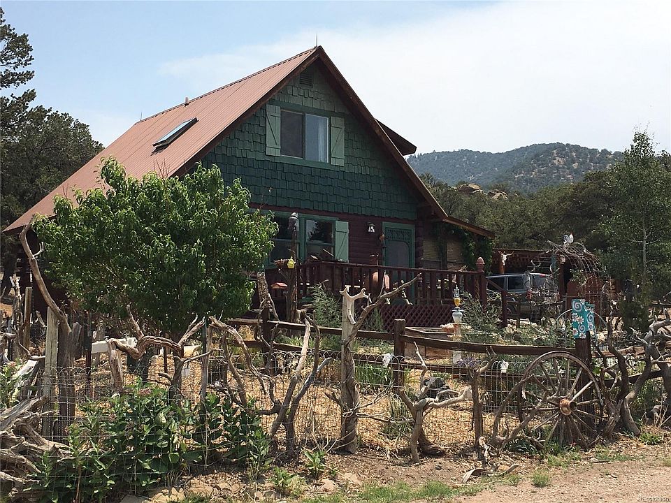 Sustainable Living at it's Best. Solar Equipped Cabin with back up generator includes a Guest House, Heated Shop on 18+ acres bordering more than 55,000 acres of BLM. Just minutes to the Arkansas River, a short drive to Salida and the Monarch Ski Resort. Stunning Sangre de Cristo Mountain views. The Cabin has been masterfully refurbished with unique touches including pine floors, aspen wood walls, custom beetle kill kitchen cabinets. Upstairs are 2 large bedrooms and bath. The Guest House complete with kitchen, living room, bedroom and bath (that all needs to be remodeled and updated) with double oversized garage beneath. 1500 sq ft heated shop with 3 phase power could easily be solar powered. Just a few human full time neighbors nearby but there is a huge community of wildlife living all around - elk, deer, turkey, bear and lions. Has potential for VRBO. Sedans can make the 5 mile easement through BLM to access this private haven. Realtor Escort, by appointment only.