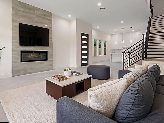 Discover this stunning new contemporary home in Rice Military featuring 5 bedrooms, 4.5 bathrooms, and 3,350+ sqft of expertly designed living space. The property boasts a front-loading driveway, soaring 11' ceilings, and an open-concept design flooded with natural light. The designer kitchen impresses with quartz/granite countertops and premium KitchenAid appliances, while upstairs reveals a spacious game room and luxurious primary suite with freestanding soaking tub. Premium construction includes 2x6 prime lumber, spray foam insulation, and beautiful engineered wood floors throughout. Modern amenities feature smart home technology with programmable thermostat and an energy-efficient two-stage HVAC system. Enjoy the private backyard and stunning rooftop terrace as well. With quick access to downtown, Memorial Park, and the Medical Center, this urban oasis perfectly balances luxury living and unbeatable convenience.