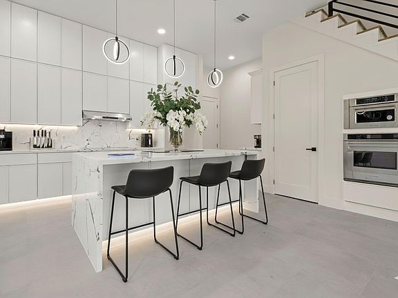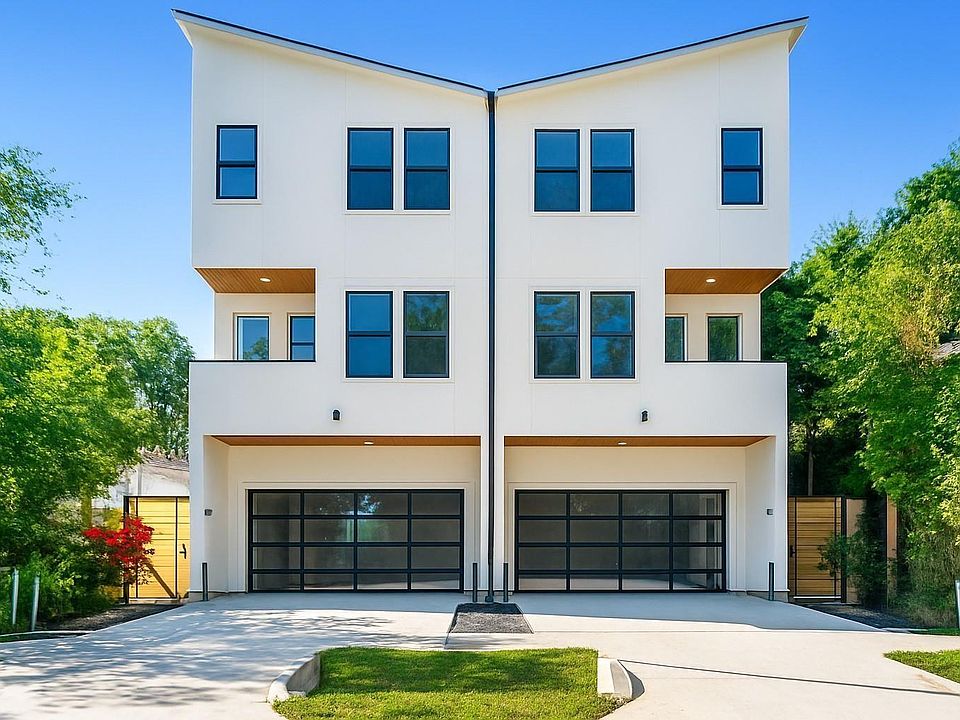 Discover this stunning new contemporary home in Rice Military featuring 5 bedrooms, 4.5 bathrooms, and 3,350+ sqft of expertly designed living space. The property boasts a front-loading driveway, soaring 11' ceilings, and an open-concept design flooded with natural light. The designer kitchen impresses with quartz/granite countertops and premium KitchenAid appliances, while upstairs reveals a spacious game room and luxurious primary suite with freestanding soaking tub. Premium construction includes 2x6 prime lumber, spray foam insulation, and beautiful engineered wood floors throughout. Modern amenities feature smart home technology with programmable thermostat and an energy-efficient two-stage HVAC system. Enjoy the private backyard and stunning rooftop terrace as well. With quick access to downtown, Memorial Park, and the Medical Center, this urban oasis perfectly balances luxury living and unbeatable convenience.
